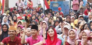 Bupati Trenggalek, Mochamad Nur Arifin, bersama Novita Hardini saat menghadiri gebyar PKH, Kecamatan Munjungan, di Pantai Balado, Senin (20/2/2023) (Foto: medianews.id Hardi Rangga).
