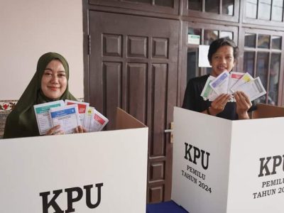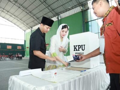 Wabup Trenggalek dan Istri Salurkan Hak Suara di TPS 14 Desa Kedunglurah